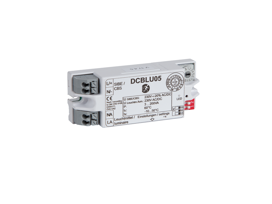 - Geeignet zum Anschluss an Zentralbatterie-Anlagen nach DIN VDE 0108 / EN 50171.