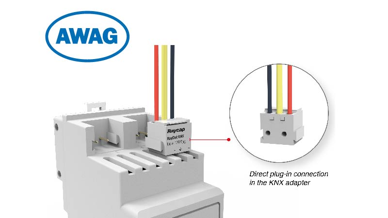 Das RayDat KNX Überspannungsschutzgerät der Kategorie (IEC/EN) D1/C1/C2/C3 mit innovativer Anschlusstechnik für KNX BUS-Systeme.
