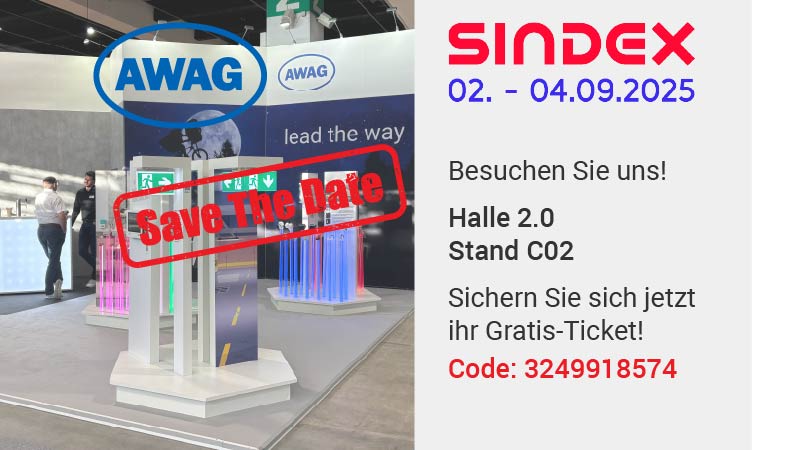 Vom 02. – 04. September findet die «Sindex» in Bern statt. Die AWAG Elektrotechnik AG ist als Aussteller vor Ort. Seien Sie mit dabei und sichern Sie sich ihr kostenloses Eintrittsticket mit dem Code: 3249918574