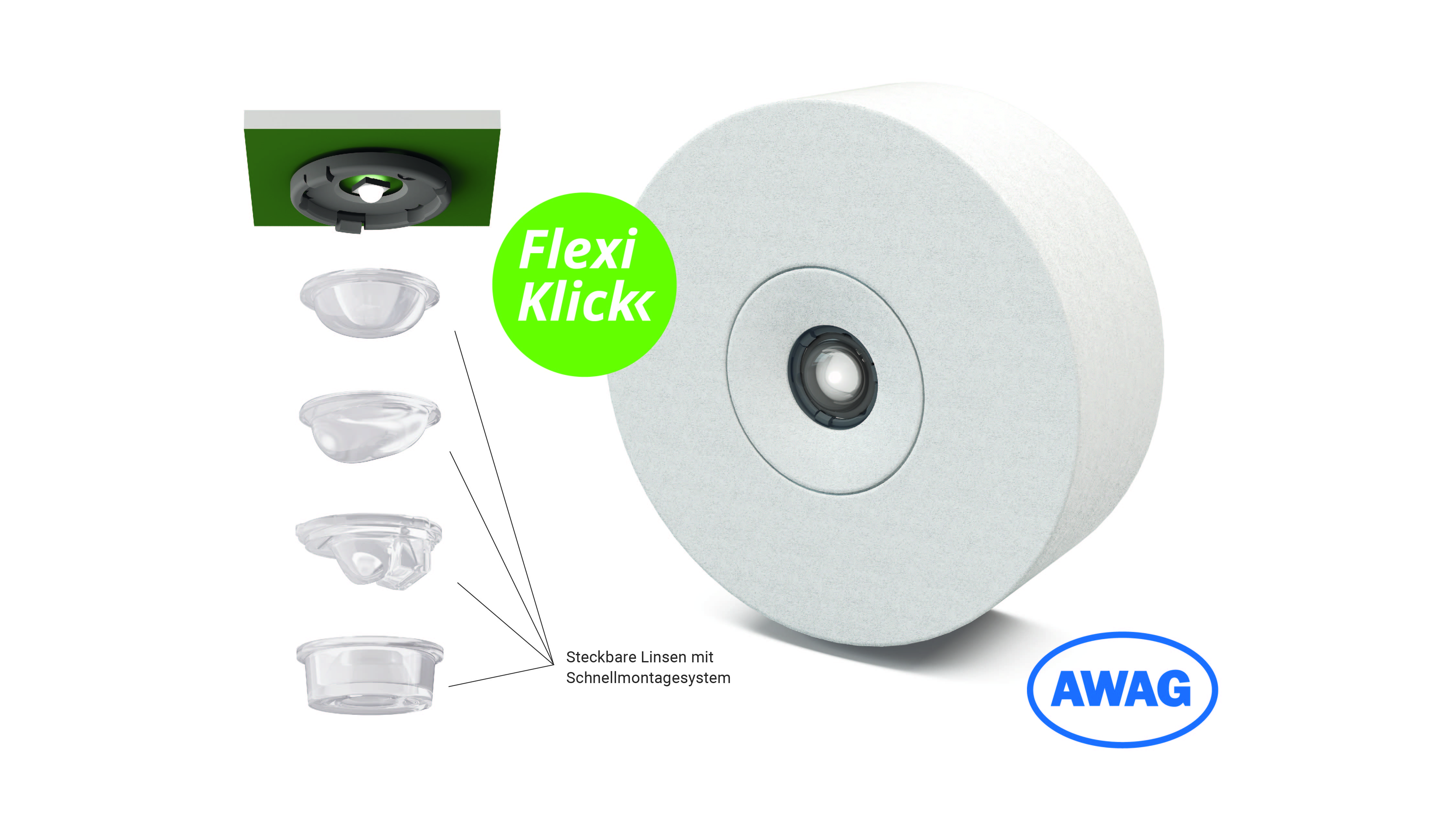 Unserer bewährten AWIL-Sicherheitsleuchten mit dem Linsensystem Flexi click. Im Lieferumfang sind Rund- und Flurlinse bereits enthalten. Spot- und Beamlinse sind separat erhältlich.